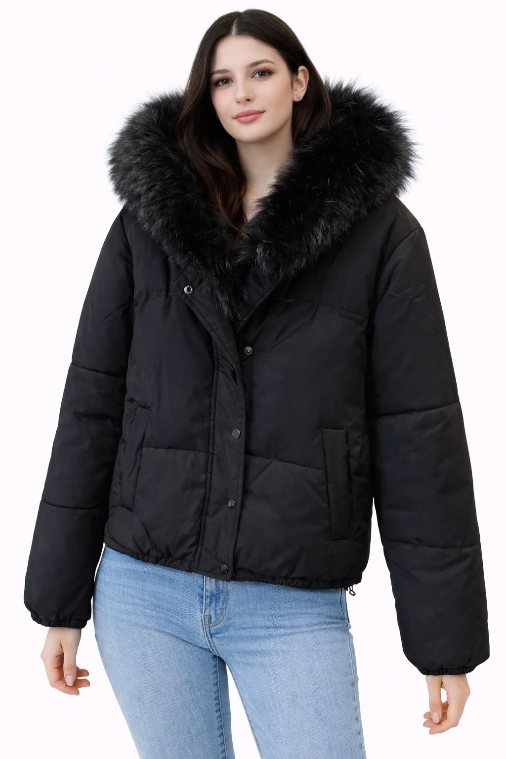 Son col généreux en fausse fourrure noire apporte une touche chic et sophistiquée, idéale pour sublimer vos tenues hivernales. Que ce soit pour une journée en ville ou une sortie décontractée, la doudoune LUNA s’adapte facilement à tous vos looks.