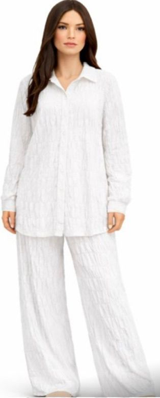 L’ensemble femme Milano allie élégance et confort grâce à sa coupe ample et son design moderne. Composé d’une chemise fluide à manches longues et d’un pantalon large assorti, il offre une silhouette raffinée tout en garantissant une grande liberté de mouvement.